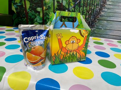Enjoy entry into the play area for your little one with a childrens hot or cold box meal with a choice of either chicken nuggets, beef burger, sausages, fish fingers or veggie fingers all served with fries. Alternatively choose a sandwich box with either a tuna, ham, cheese or jam sandwich served with pom bears and a fruit box. All of our childrens meals come with a flavoured milk or a capri sun or bottle of water.